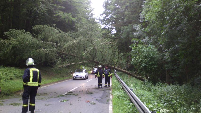 Straße. Die Feuerwehr Lippoldsberg unterstütze die