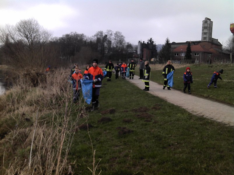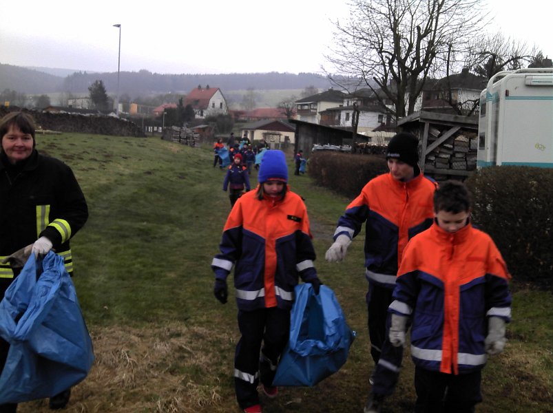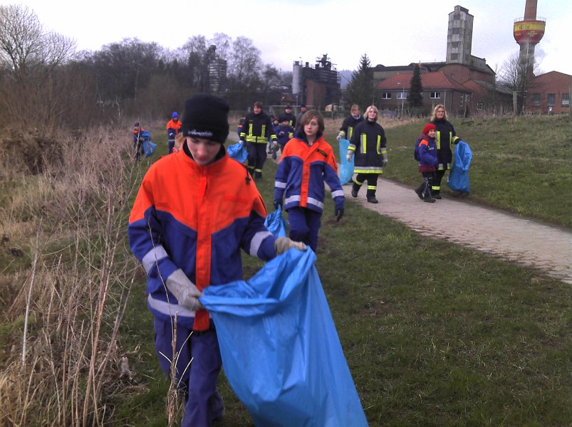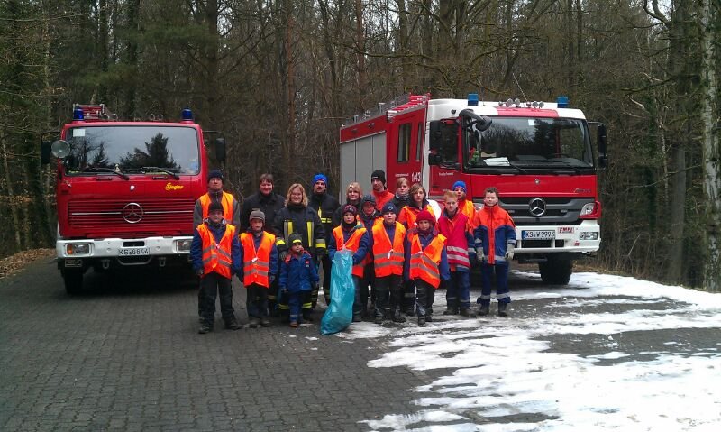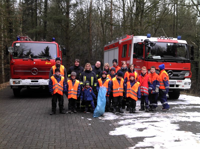 Mitglieder der Bambini u. Jugendfeuerwehr sowie der Einsatzabteilung beteiligten sich tatkräftig an der Aufräumaktion.