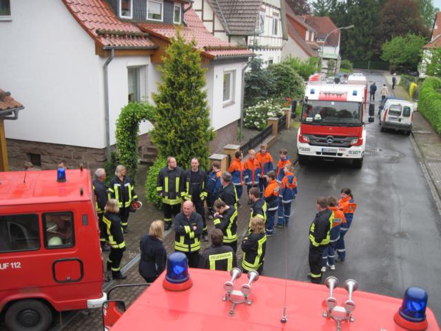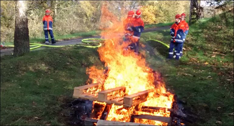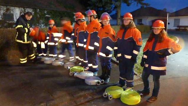 Jugendfeuerwehrmitglied und einem aus der Einsatzabteilung zusammen. Der