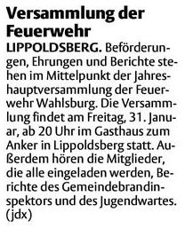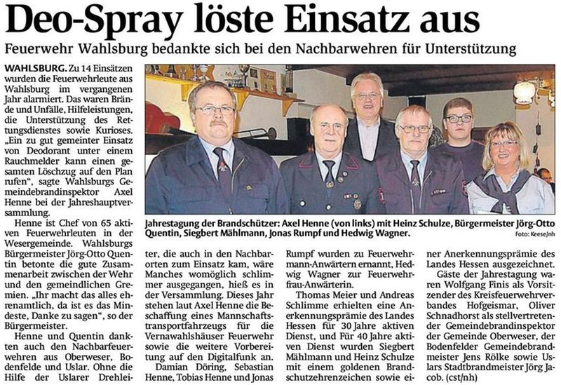 zur Jahreshauptversammlung der Freiwilligen Feuerwehr Wahlsburg am 31.Januar