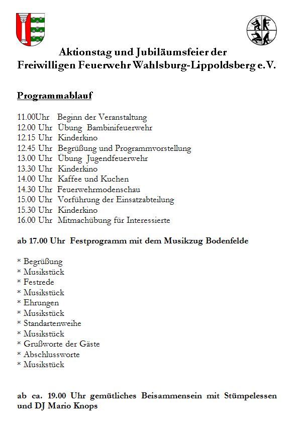 Jubiläumsfeier am und im Feuerwehrhaus zu veranstalten. Alle