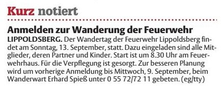 19:30 Uhr ist dann Treffen am Feuerwehrhaus zur Abfahrt nach Vernawahlshausen