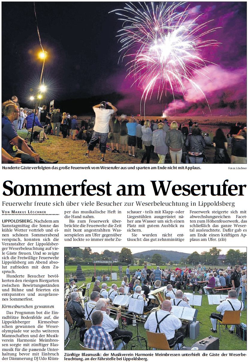 13.Juli 2015 HNA Bericht Weserbeleuchtung