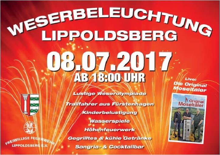 Wie auch in den vergangenen Jahren findet das Lippoldsberger Osterfeuer wieder am Ostersonntag an der Weser statt. Anlieferung von Baum und Heckenschnitt ist wieder am Ostersamstag in der Zeit von 9-12 Uhr möglich. Die Jugendfeuerwehr trifft sich zum Aufbau um 8:30 Uhr am Feuerwehrhaus. Am Ostersonntag treffen sich alle Helfer um 17:00 Uhr am Feuerwehrhaus. Die Jugendfeuerwehr wird dann bei Einbruch der Dunkelheit das Osterfeuer entzünden. Am Ostermontag ist dann um 10.00 Uhr treffen zum gemeinsamen aufräumen. |