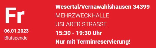DRK-Blutspendetermin: Freitag 06.01.2023 - vormerken und schnell Termin reservieren! ! ! |