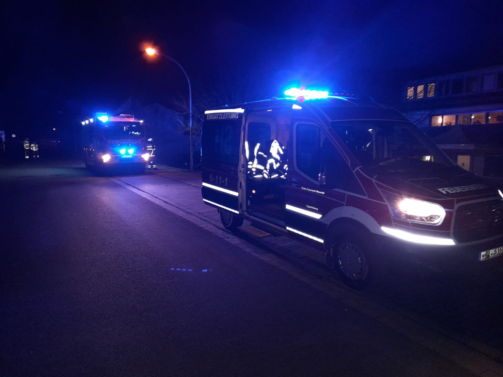 | Am letzten Freitag des Jahres wurden wir erneut in die Neuendorfstraße alarmiert, diesmal aber nicht wieder wegen Hochwasser. Das Einsatzstichwort lautetet diesmal F2Y Küchenbrand mit Menschenleben in Gefahr. Gemeinsam mit den Feuerwehren aus Vernawahlshausen, Gieselwerder und Bodenfelde erkundeten wir die Lage und ein Trupp unter Pressluftatmer konnte mit Wärmebildkamera und Kleinlöschgerät die Lage im Inneren erkunden und glücklicherweise schnell Entwarnung geben. Der Backofen war der Auslöser und hatte für die Rauchentwicklung gesorgt. Nach Belüftung der Küche konnten die Nachbarwehren schnell wieder aus dem Einsatz rausgelöst werden und wir dann kurz danach ebenfalls. | |