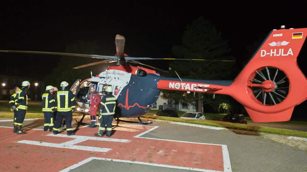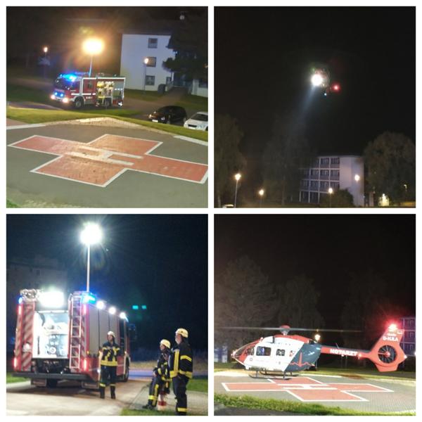 | Gleich zweimal wurden wir am Samstag von der Leitstelle Kassel in die Klinik alarmiert. Am Vormittag löste die Brandmeldeanlage im Haus Bremen aus und sorgte für die erste Einsatzfahrt hoch ins Klinikgelände. Nach Kontrolle des betroffenen Bereichs wurde aber zum Glück nichts festgestellt und es konnte Entwarnung gegeben und die Anlage zurückgesetzt werden. Gegen 21 Uhr gab es dann erneut Alarm, diesmal zu einer Hilfeleistung im Klinikgelände. Wie schon einmal im letzten Jahr wurden wir zum Ausleuchten des Hubschrauberlandeplatzes angefordert. Eine dringliche Patientenverlegung mit dem Hubschrauber machte dies erforderlich, mit den beiden Lichtmasten unserer Fahrzeuge sorgten wir für ausreichend Licht und ermöglichten somit Start und Landung. |