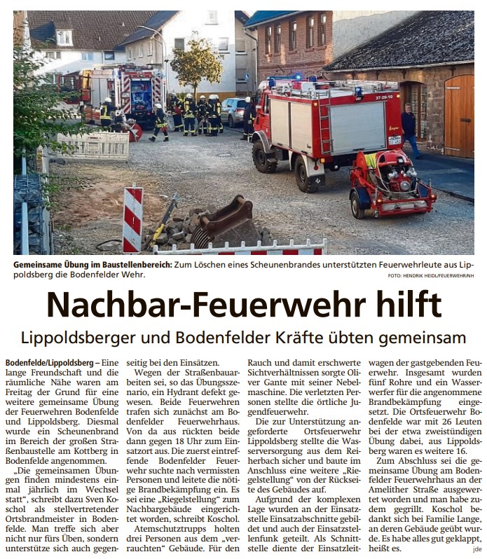 18.09.2023 HNA-Bericht von der gemeinsamen Übung am 15.09.2023