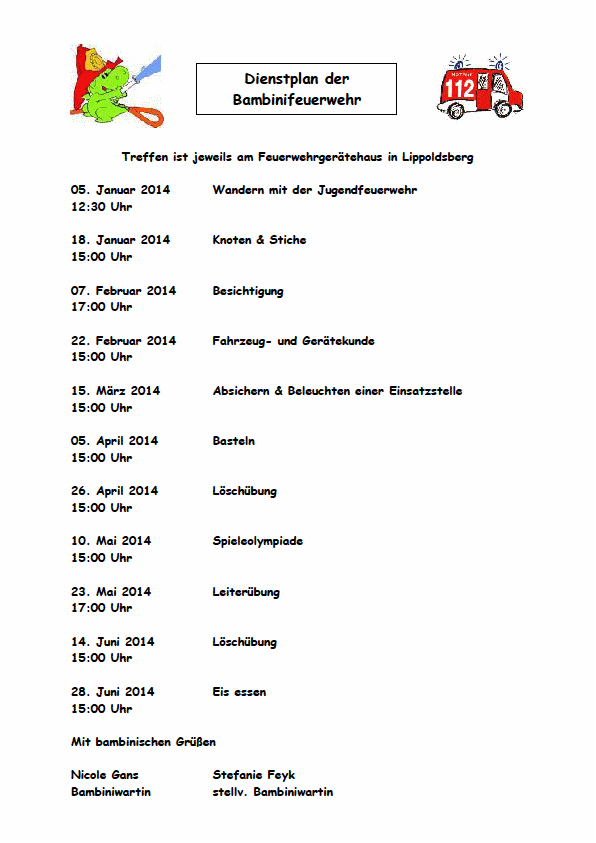 15. Dezember 2013: Der neue Dienstplan für das erste Halbjahr 2014 ist da