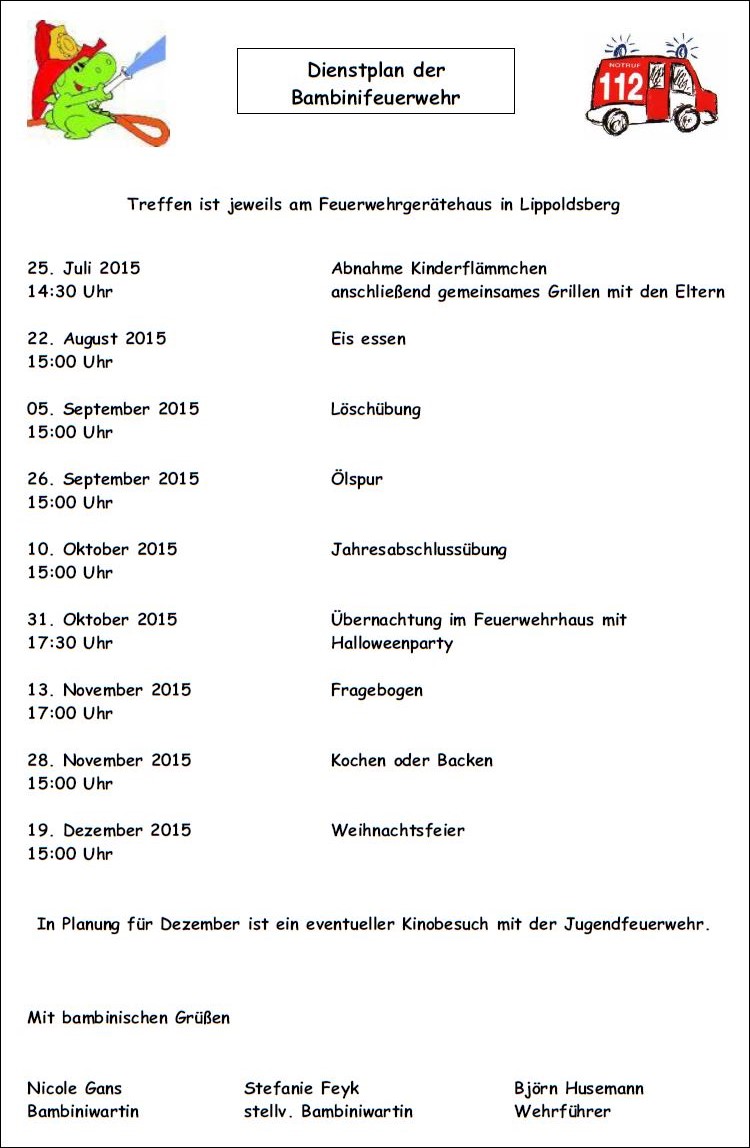 30.Juni 2015 Der neue Dienstplan für das zweite Halbjahr 2015 ist da:
