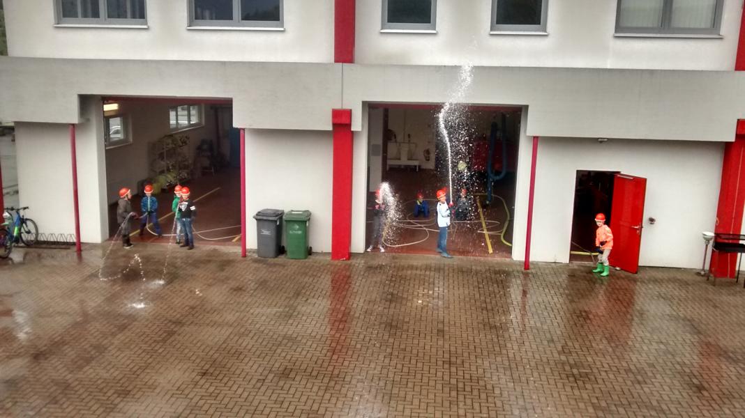 | Heute war mal wieder Zeit für eine Löschübung bei den Bambinis. Leider spielte das Wetter nichts so richtig mit und es regnete Bindfäden. Da Trockenübungen aber langweilig sind wurde kurzerhand die Löschübung in der Fahrzeughalle aufgebaut und durchgeführt. So standen die Trupps am Strahlrohr im trockenen und hatten trotzdem Spaß! Bild u.Text: M.Feyk |