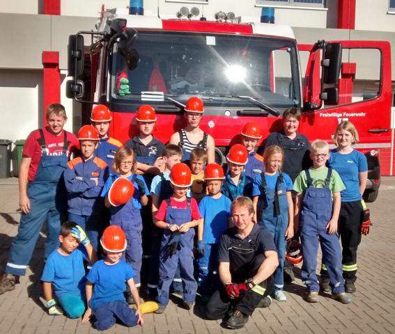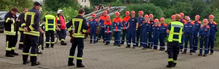 die Jugendfeuerwehr und Einsatzabteilung zu einer gemeinsamen