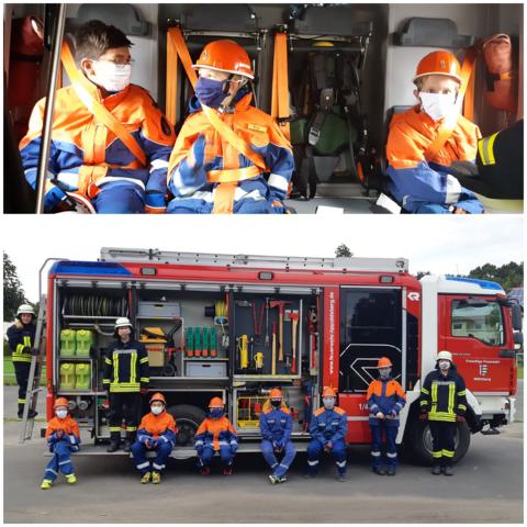Jugendfeuerwehrmitglieder diese schicken Masken im Jugendfeuerwehr