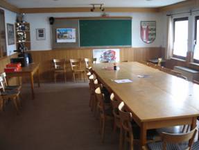 Der Schulungsraum: Ausgestattet mit Tafel, Leinwand, Projektor und Beamer findet hier hauptsächlich im Winter die theoretische Ausbildung der Einsatzabteilung und der Jugendfeuerwehr statt. |