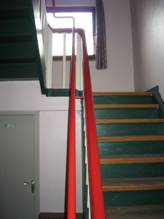 Treppenhaus: Da unser Umkleideraum im 1. Stock liegt musste 2005 auf Anweisung der Unfallkasse Hessen das Treppengeländer erhöht werden. |