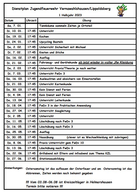 Aktueller Dienstplan der Jugendfeuerwehr