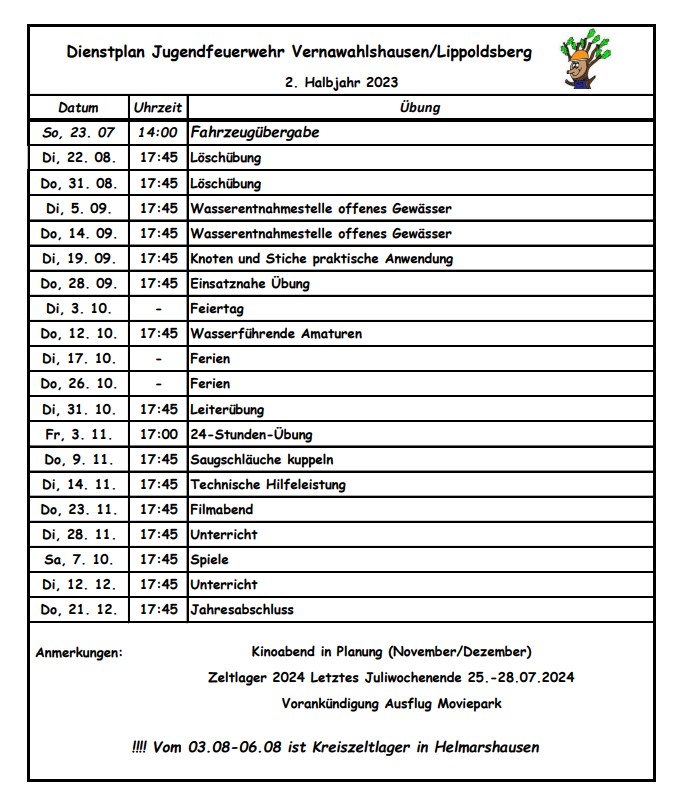 24.08.2023 Der neue Jugendfeuerwehr Dienstplan für das 2. Halbjahr 2023 ist online