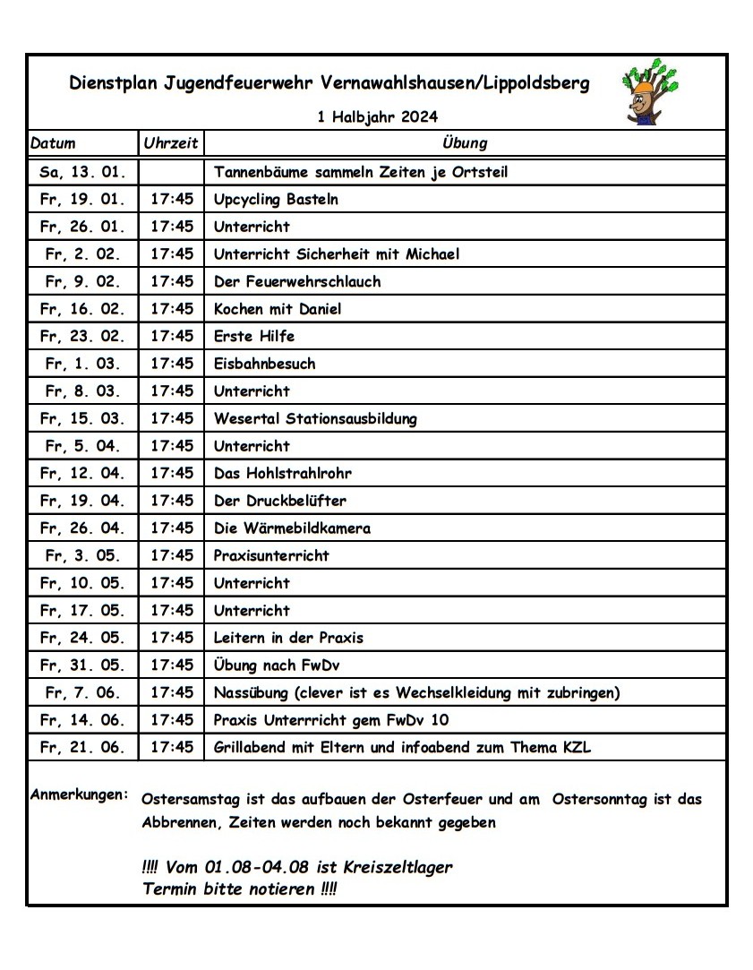 25.01.2024 Der neue Jugendfeuerwehr Dienstplan für das 1. Halbjahr 2024 ist online
