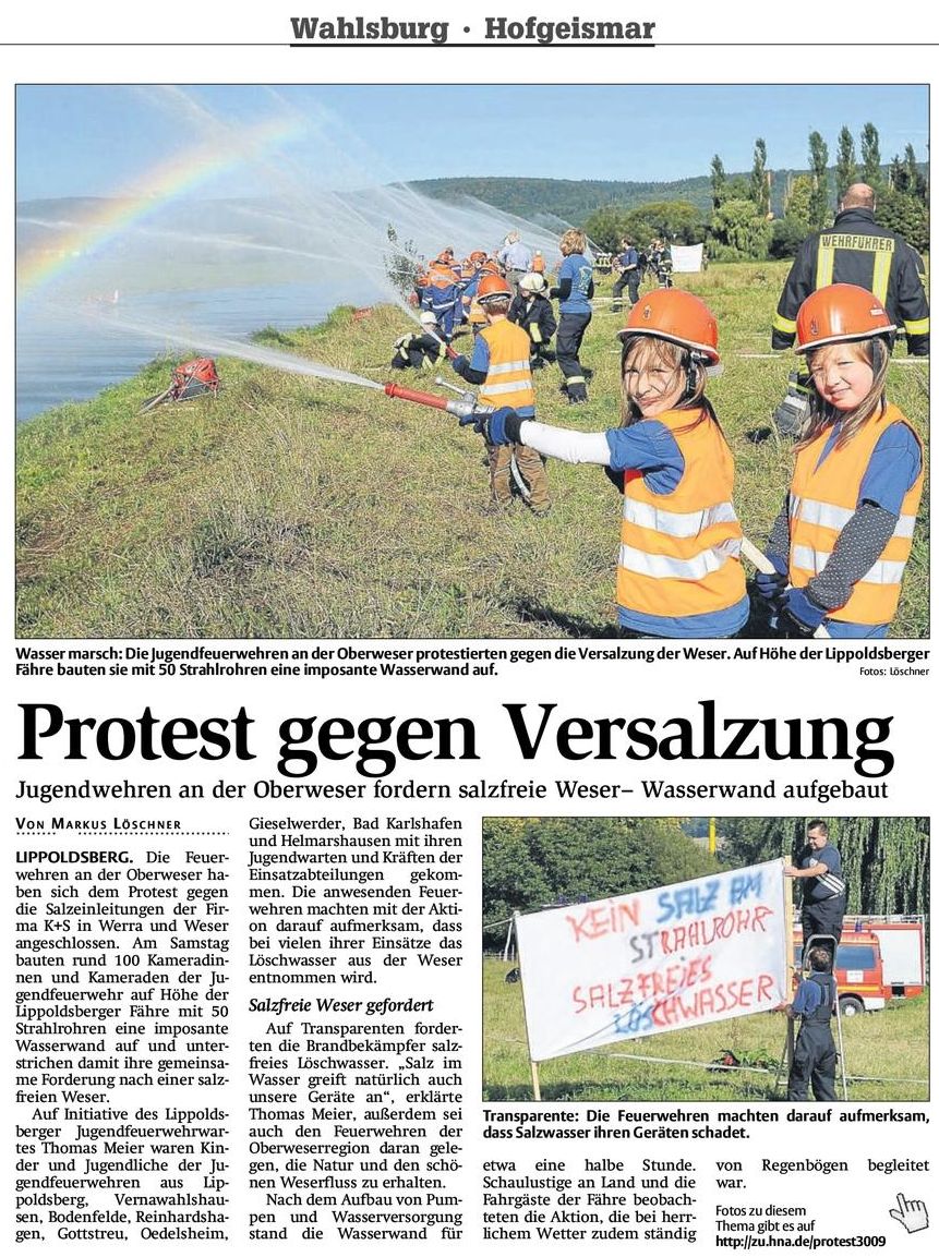 Firma K+S und somit gegen die Weserversalzung. Da bei vielen Einsätzen das Weserwasser als Löschmittel genutzt